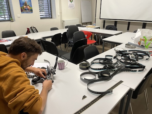 Alternance de cours théorique et mise en pratique sur l’ensemble des équipements de projection argentique d’une cabine.